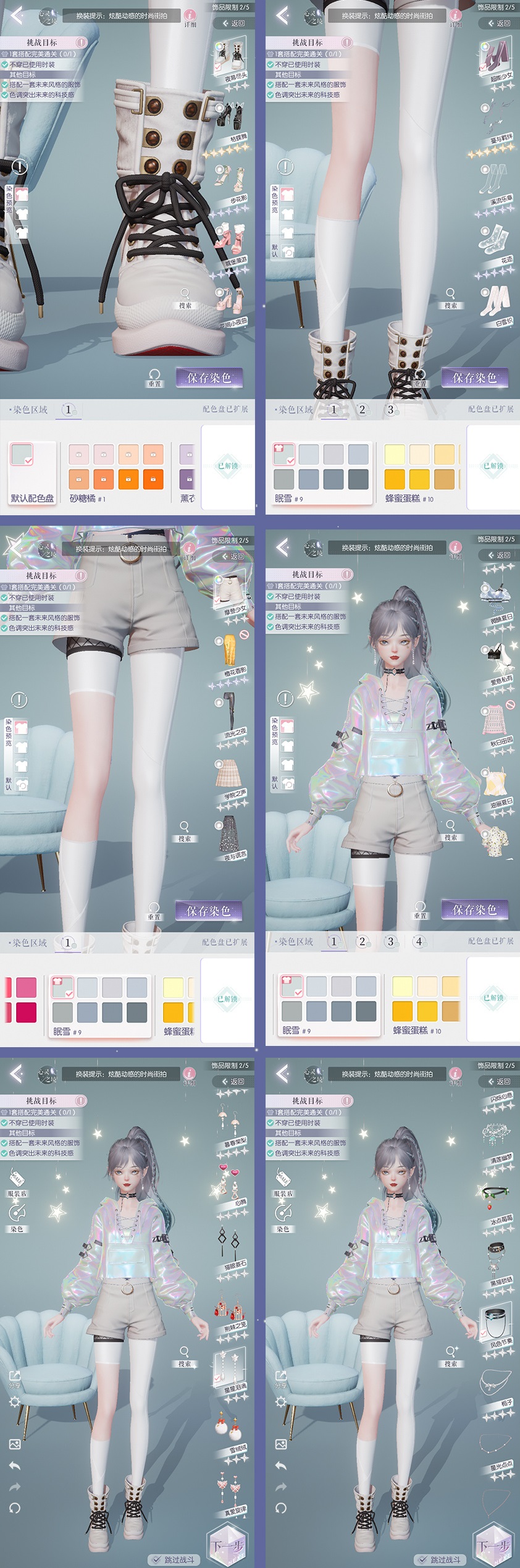 3/4星即可过关,灰白色:如果需要染,就染成灰色盘第一个颜色,为了节省这里选的都是3星服装来染色,大家可以放心大胆开盘。