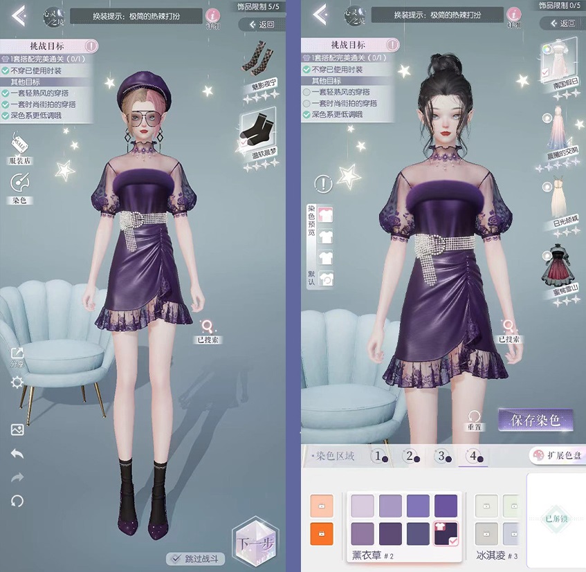 头发以外的时装需要黑色或者深紫色,(优先染2色盘的深紫,不用拓展后面色盘)。