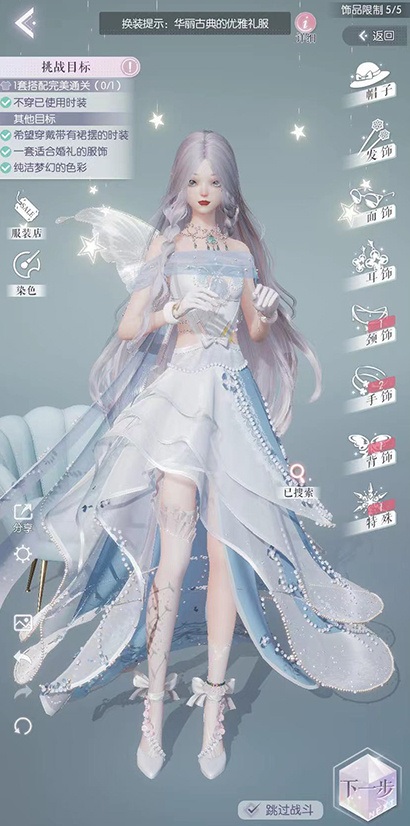 这关分数大概需要在25- 29w之间,较高,需要搭配2-3件五星的衣服/饰品过关。