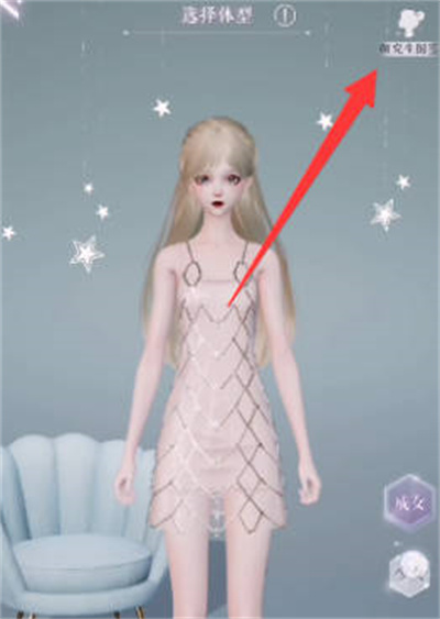 3:点击了之后,就会跳转到选择体型的页面了,我们点击右上角的颜究生图鉴功能;