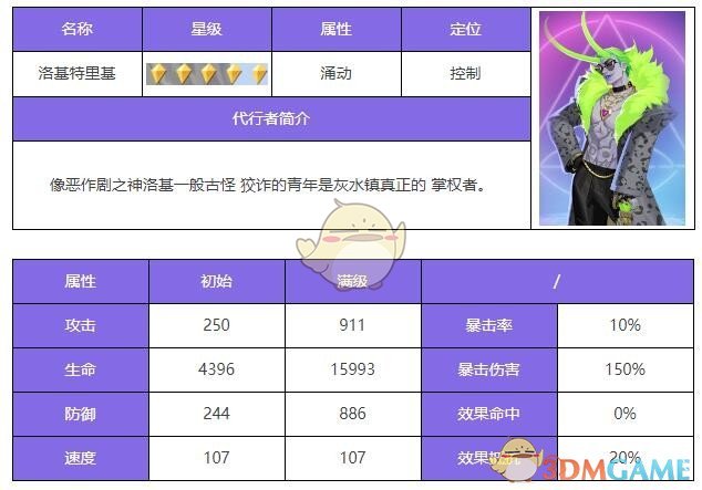 理由:净化角克星,失手率下降和减速也是很关键的效果,让对面变得又慢又痒。 给他低星不是因为他不好,而是你作为新手用不着。 另外电神才是发挥洛基这个角色的真谛。