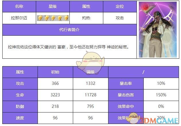 拉那尔迈是众神派对五星英雄,那尔迈是一名可以通过叠加自身炎阳状态,造成大量输出伤害的爆发攻击型代行者。那尔迈每次行动或获得增益状态时,都会为自身附加炎阳标记。每层炎阳标记都会提升炎阳灼射的伤害,当炎阳标记叠加到一定层数时,炎阳灼射还可以无视敌方的部分防御力并减少自身的技能冷却时间。下面是小编给大家带来的《众神派对》拉那尔迈角色测评分享,感兴趣的小伙伴可以来看看!