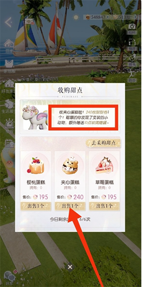 1、活动期间每日一共可购买3个甜点。若您当日购买了甜点但没有售出时,可在次日一起出售给小动物,每日最多可出售6个甜点。