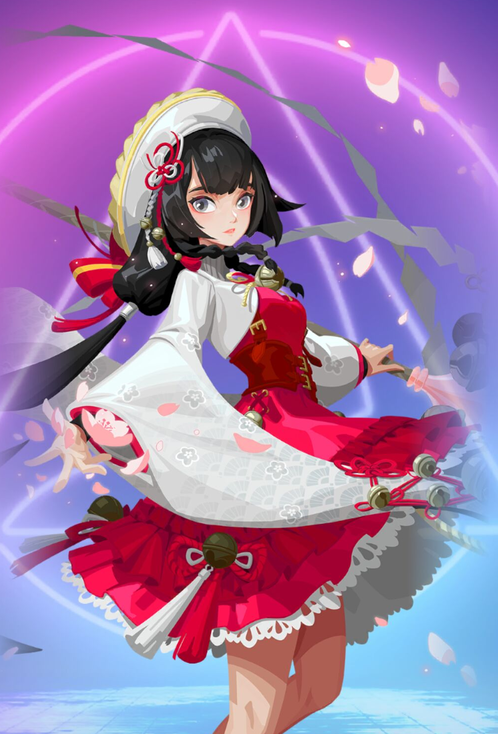 攻击全体敌方,伤害为自身攻击力30%和最大生命值4%,50%概率为目标附加2回合【攻击下降】为全体友方附加2回合【神乐之舞】。冷却回合:5