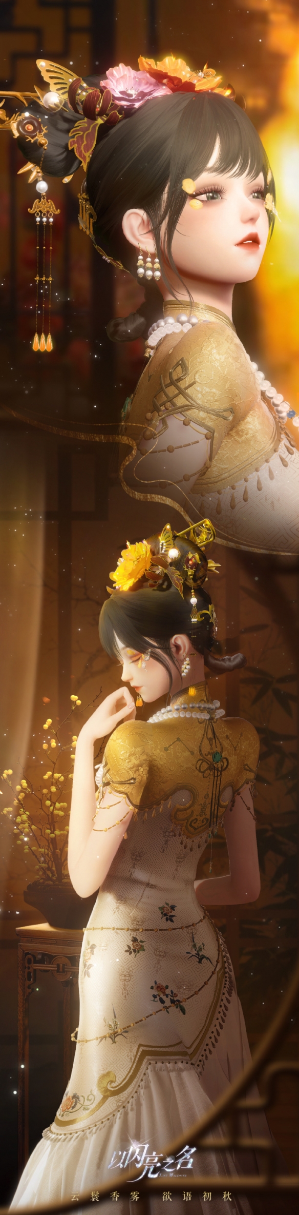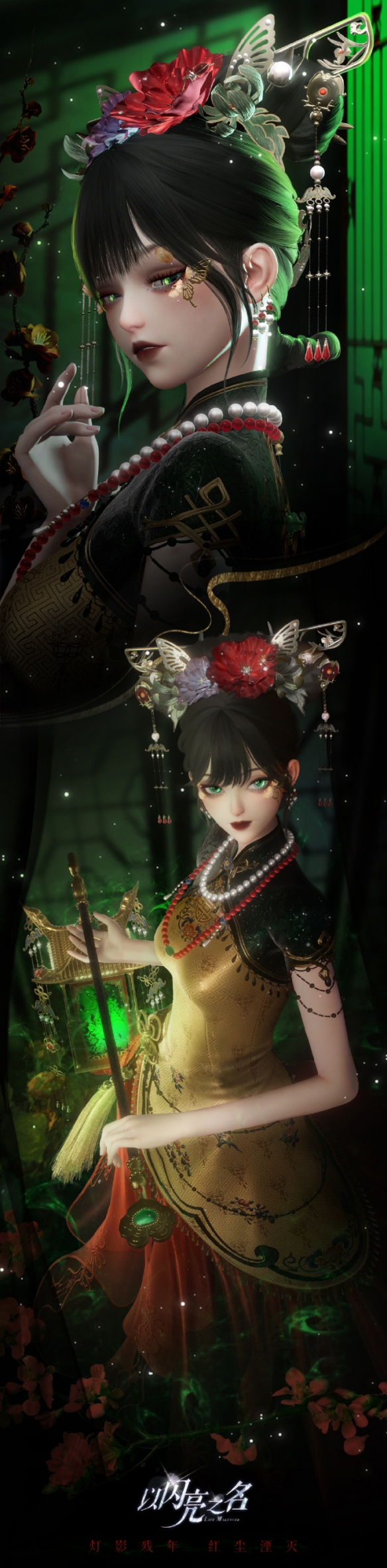 「痴梦无诉」裙身采用传统中式绸缎暗纹效果,在胸口,下身裙摆处添加绣花图案,更能体现出古典古韵,裙摆融合半透纱质,裙底添加刺绣图案,增加细闪设计,让整体更有设计感和氛围感,打破传统搭配,营造新中式时尚氛围。古典与新中式碰撞混搭,明媚张扬与幽暗神秘浑然天成。