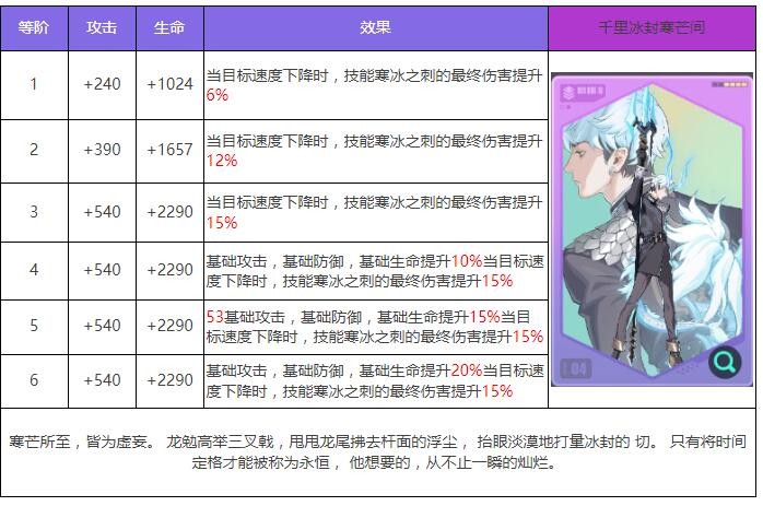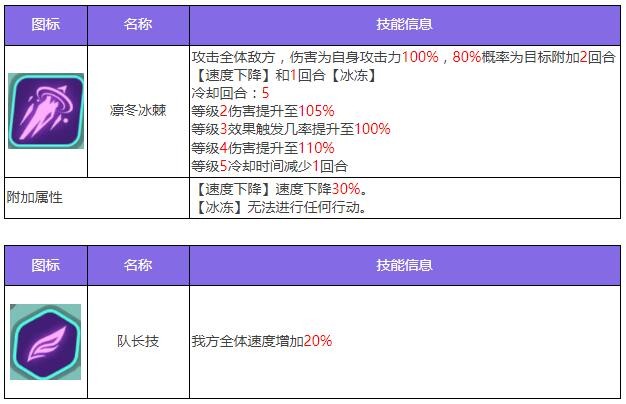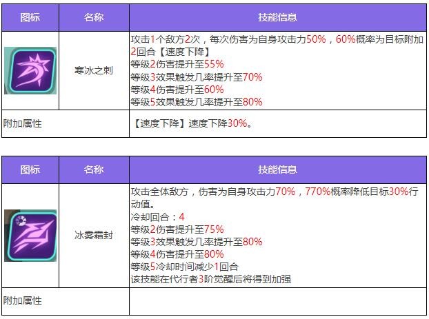 龙勉善于对敌人附加冰冻与速度下降状态,是一名优秀的控制型代行者。龙勉的技能凛冬冰棘有一定概率为敌方全体附加冰冻与速度下降的状态。技能冰雾霜封有一定概率减少敌方全体的行动值。