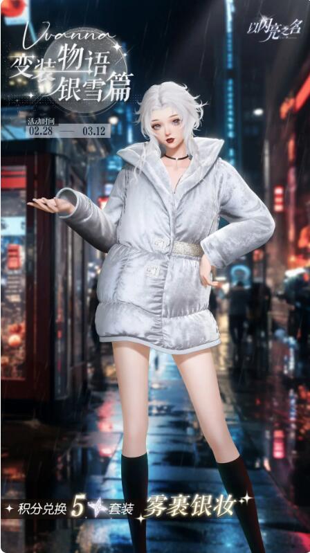 在《以闪亮之名》游戏中,2月28日会更新变装物语银雪活动。活动期间,玩家可以参与变装物语积分的累积,交换五星套装雾裹银妆。那么接下来就由小编来给大家详细介绍一下这次获得,各位玩家可以参考一下,提前熟悉一下活动内容。