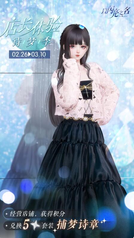 《以闪亮之名》店长将于2月26日开始体验诗梦季活动。玩家可以通过参与活动积累足够的销售积分,获得五星套装[梦想诗章]、精致家具【青瓷葫芦瓶】、拍照特效[虹光晕]等材料道具,接下来就由小编带各位具体看一下这次活动有什么内容。
