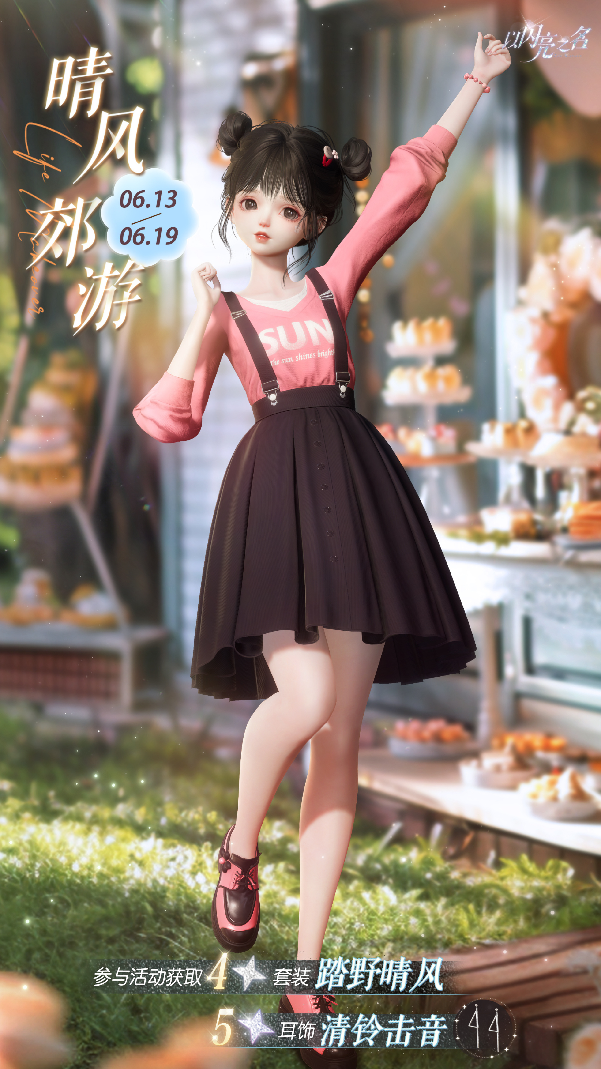 晴风郊游明日开启!累积郊游积分,可以获取限定四星套装【踏野晴风】、拍照萌拍【兔兔去野餐】、潮流色卡*13、华绽邀请函及多种材料道具!