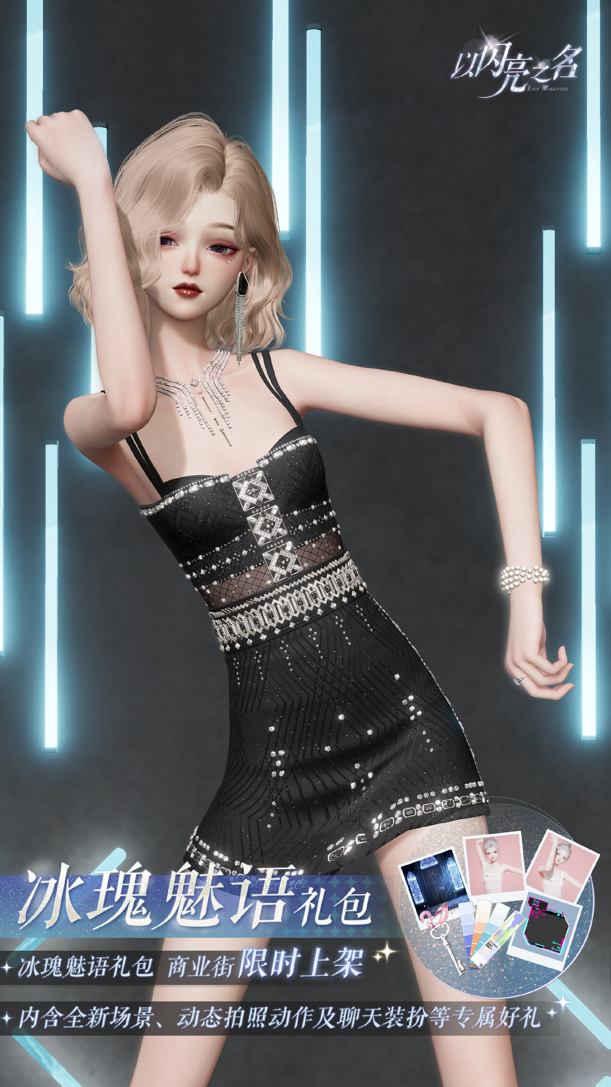 冰瑰魅语复刻外观礼包:限时礼包售卖期间,合伙人可以4.6折的价格直接购买冰瑰魅语礼包,内含摄像机镜头动态动作【魅力掌控】、拍照场景【远冬之国】、拍照动作【飞鸟屿梦】、聊天气泡【独享信号】、潮流色卡*26和遇之钥*40。