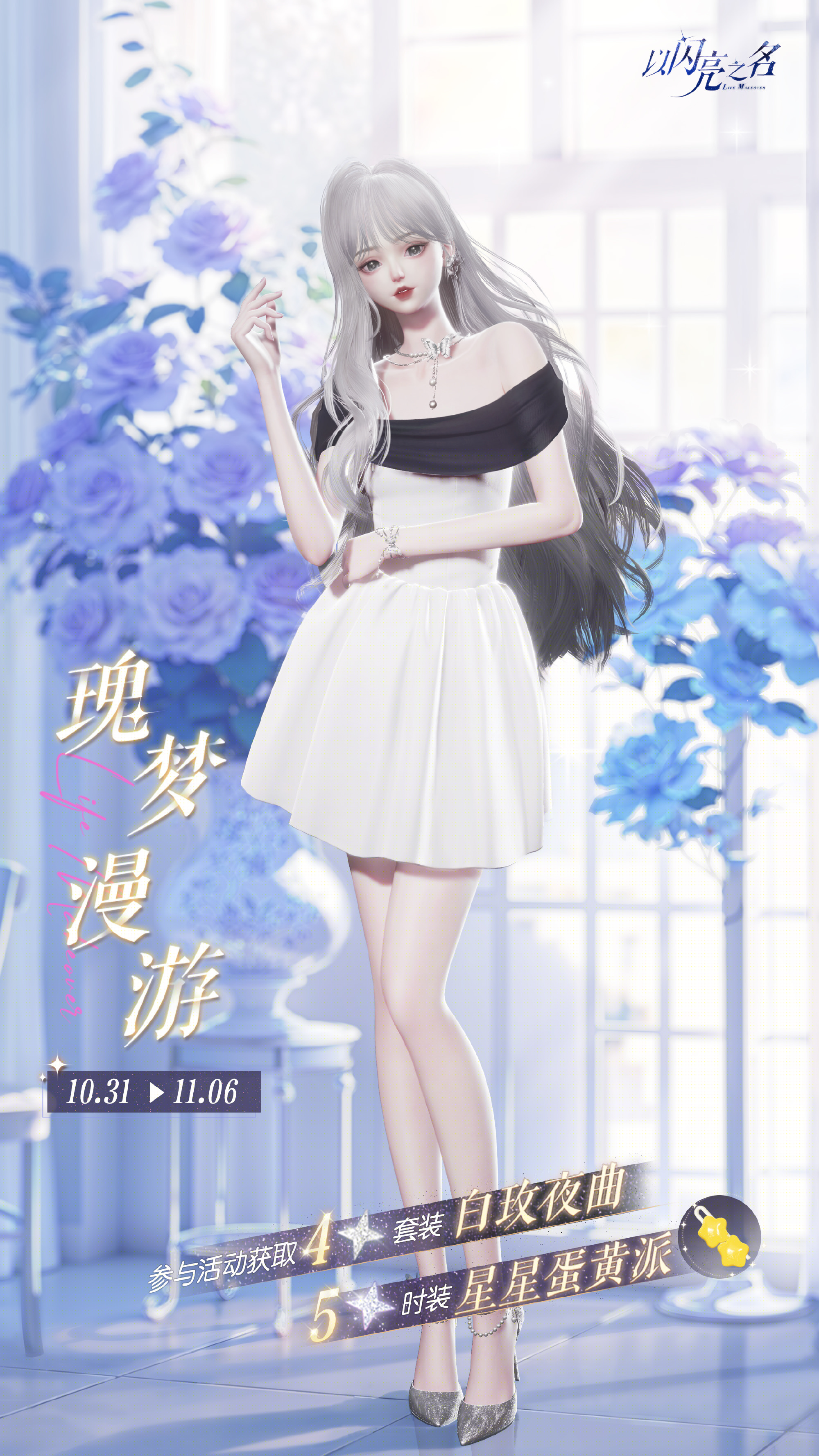 瑰梦漫游明日启程,获取四星套装「白玫夜曲」和五星发饰「星星蛋黄派」!
