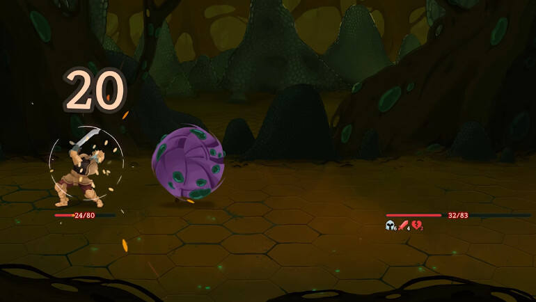 外形酷似翻车鱼,会释放无实体状态,攻杀卡组极难应对。它还会往玩家卡组塞“呼唤”状态卡,手牌中若不用,每回合结束直接扣6点生命值,格挡无法抵消。必须速战速决,别留状态卡在手牌。