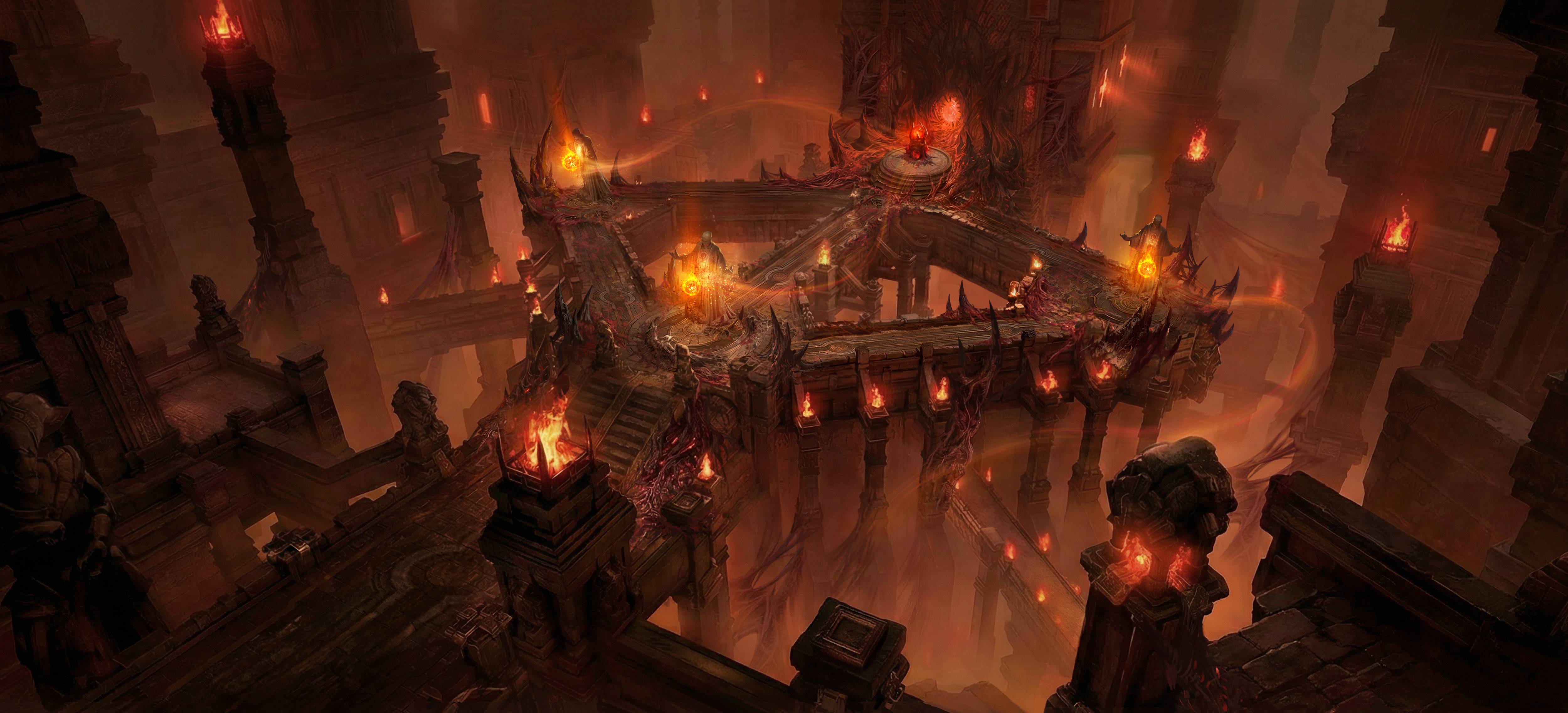 地图风格焕新,战场被恶魔入侵后遭到污染,熔岩裂隙纵横,冒险者们每一步都踏在危险边缘。