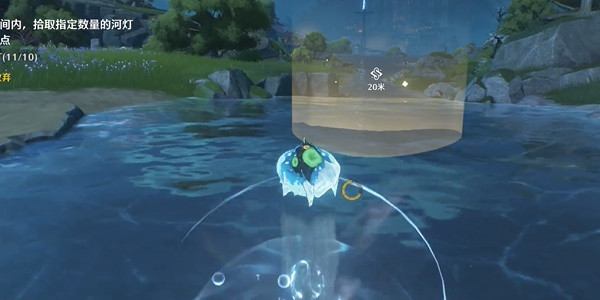 3、当玩家到达河边位置处,可以在此处看到一只海豚
