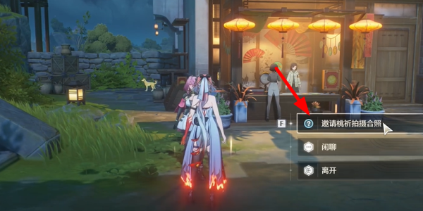 2、到达任务地之后,可以在此处看到桃祈,然后与其对话邀请桃祈拍摄合照