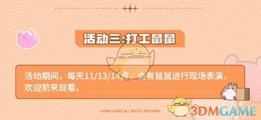在活动期间,每天11点、13点、14点,都会有鼠鼠现场表演,欢迎玩家们前来观看;
