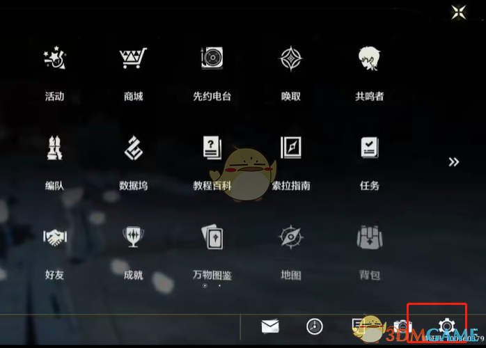 1、首先我们需要进入到游戏主界面,在下方点击设置图标进入。
