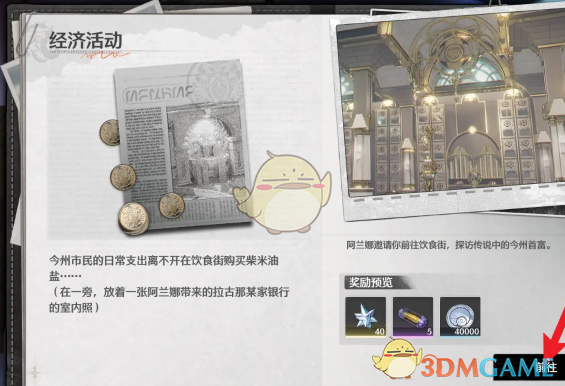 3、在经济活动页面就可以看到阿兰娜的邀约,点击右下角前往即可领取奖励。