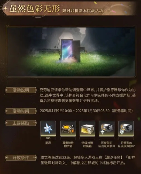 以上就是小编整理带来的《鸣潮》虽然色彩无形活动内容一览,更多相关游戏攻略,请关注易采游戏网!