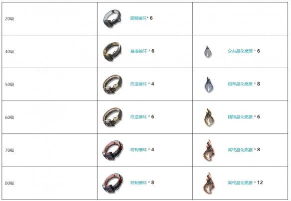 初始 / 20 / 40 / 50 / 60 / 70 / 80 / 90级: