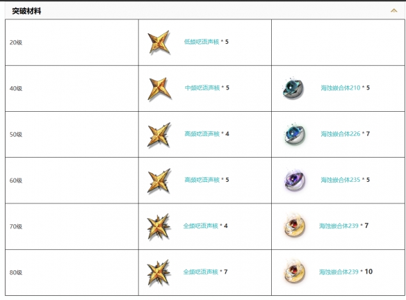 初始 / 20 / 40 / 50 / 60 / 70 / 80 / 90级: