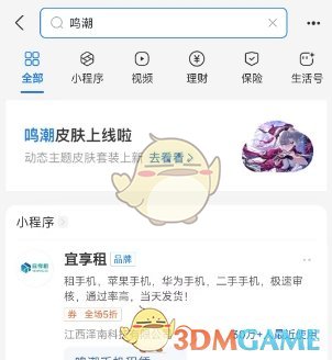 1、进入支付宝的搜索框,输入鸣潮前往活动页;