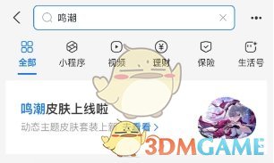 1、首先我们在支付宝搜索框内,输入鸣潮,点击皮肤板块前往;