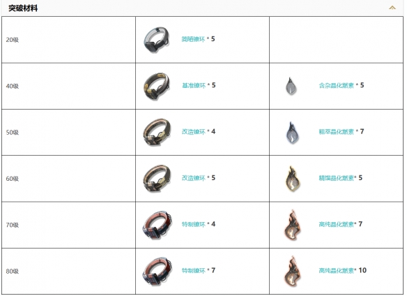初始 / 20 / 40 / 50 / 60 / 70 / 80 / 90级: