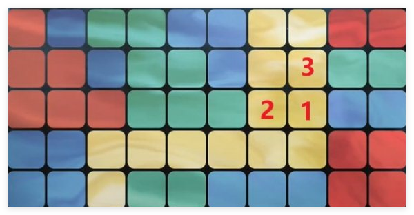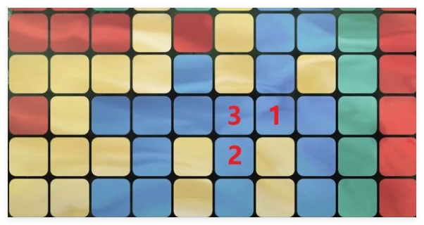 1、选择黄色,点击1的位置。