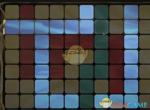 我们把绿色格子变成蓝色,这样绿色的格子就能一次性全部消失,变成蓝色的格子,同时,蓝色的格子可以连成一个整体了。