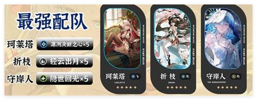 这是珂莱塔最厉害的搭配了,折枝的延奏技能能够增加他的冷凝增伤和技能增伤,最后一个起到辅助效果。