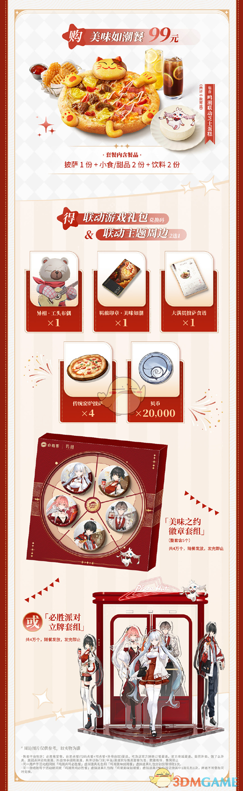 美味如潮餐是鸣潮和必胜客上线的联动套餐,这个套餐售价99元,虽然没有169元套餐那么高的规格,但是基础的套餐内容和游戏礼包限定周边还是很齐全的,大家可以自行选择套餐购买,那么这个套餐具体内容怎么样呢?下面就让小编给大家带来《鸣潮》必胜客联动美味如潮餐介绍,一起往下看看吧。