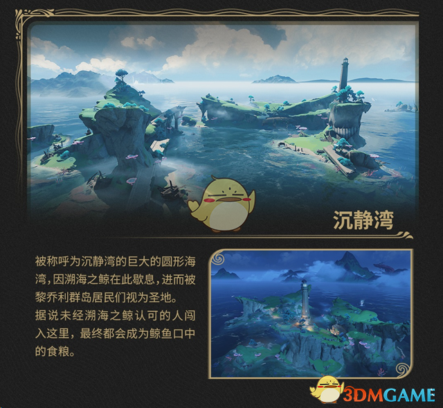 3.沉静湾:被奉为圣地的巨大圆形海湾,传说中溯海之鲸会在此休憩,未经其认可的人进入此地将有危险。