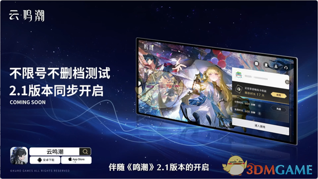 鸣潮的云游戏版也将在2.1版本上线之后同步公测,着急游玩的小伙伴们可以先行游玩云游戏!