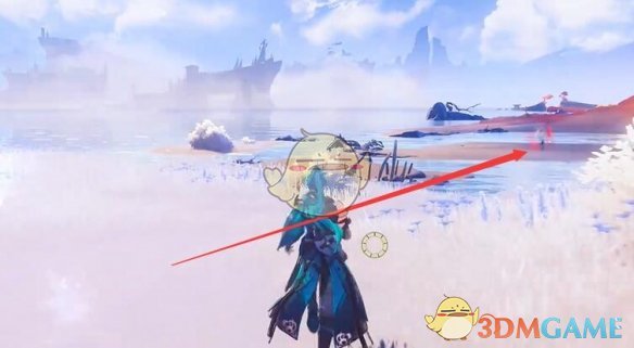 3、飞上来之后就可以在前面的海滩上看得到了。