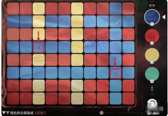 3、2号:将标注的方格依次按照蓝-绿-红-蓝-黄 顺序进行染色。