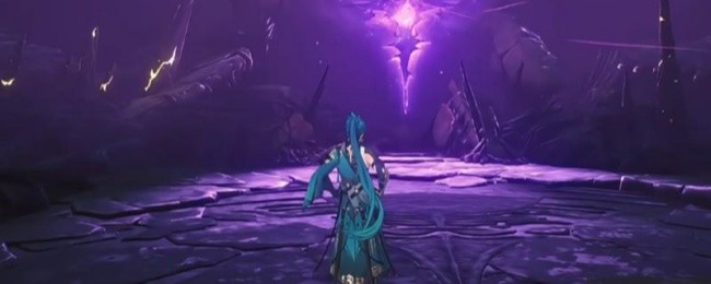 2、传送过去后能看到一个紫色传送门,进入后会来到无冠者之像的心脏位置,这里就是无妄者的所在地。(玩家等级必须达到15级以上才能挑战,建议提升到18级以获得更高的声骸掉落概率)。