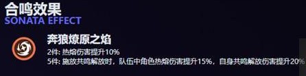 2、五件:施放共鸣解放时,队伍中角色热熔伤害提升15%,自身共鸣解放伤害提升20%,持续35秒。