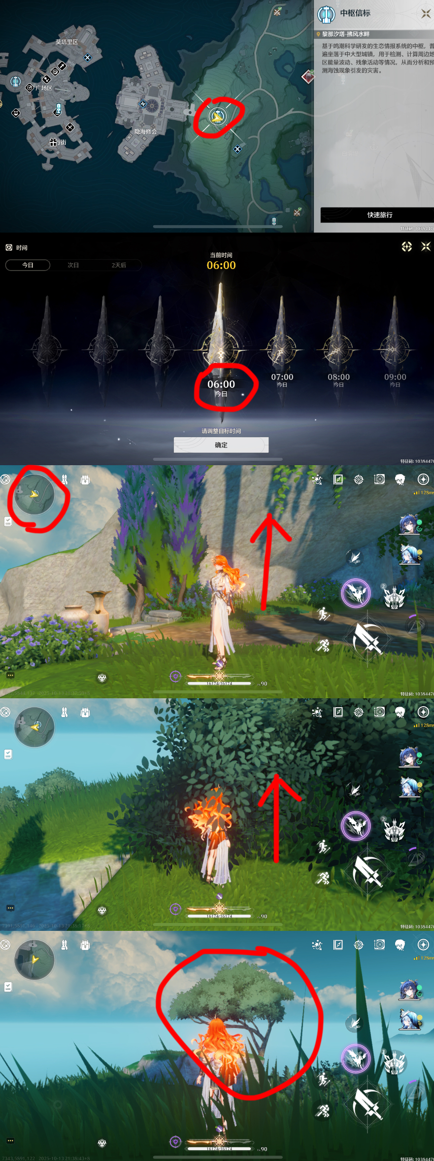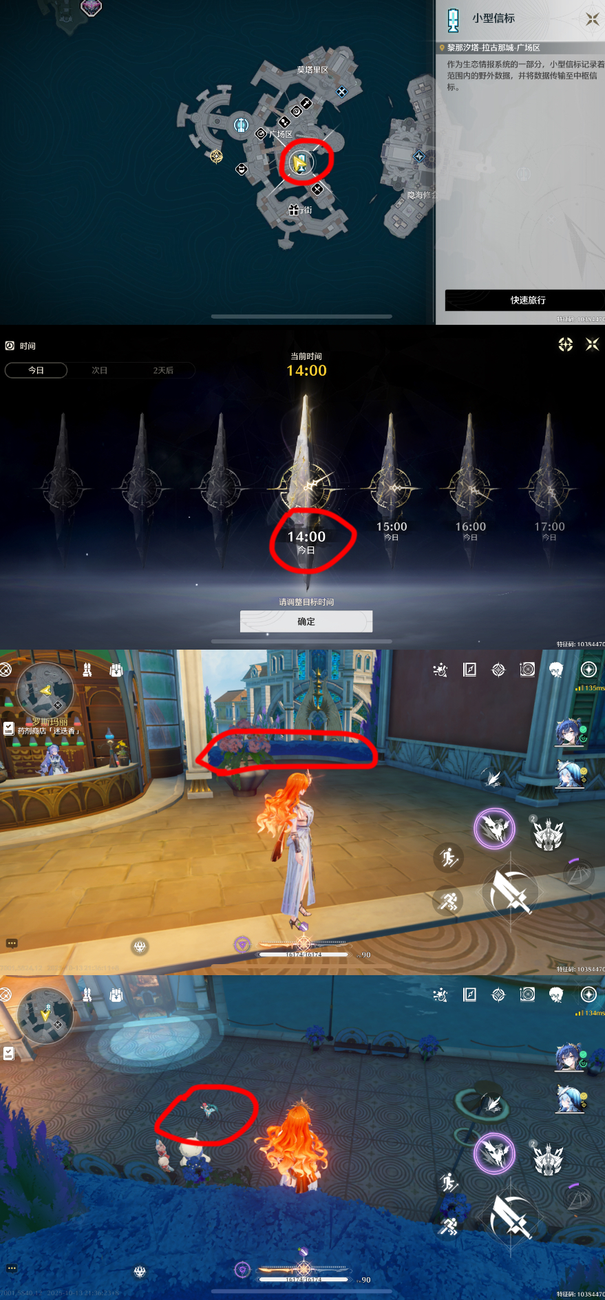 调整时间至:次日中午14:00,转动视角,小地图-南方向,走到蓝色草丛处,调整视角看向脚下的西南方向,乐队旁边有夏空可以进行对话。