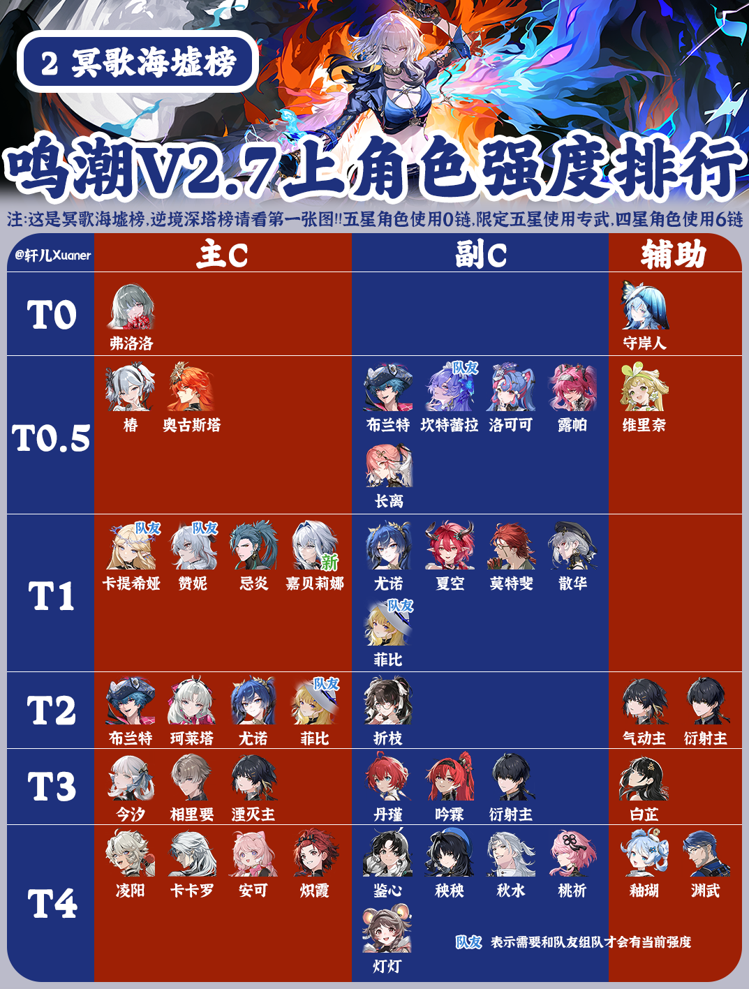 ④ 椿/今汐/菲比深塔榜由T0.5下调至T1,安可/相里要深塔榜由T1下调至T1.5,老主C伤害有一定差距。