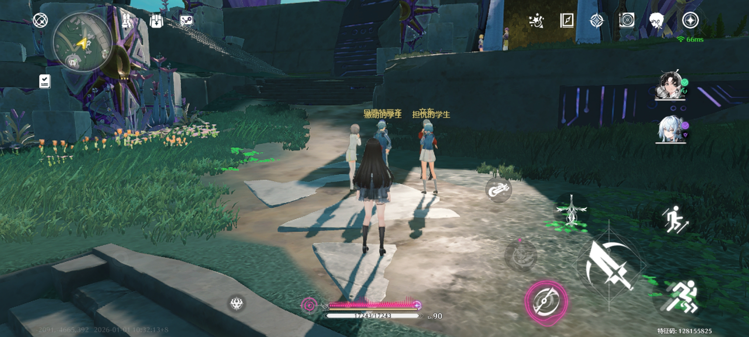 鸣潮摇曳科考怎么达成,首先来到这个位置有一群学生,和一个叫文车的npc对话,接下来按顺序来这里,第一个位置调置一天后的12:00与文车对话,第二个位置调置两天后的12:00与文车对话,如果没有出现npc就稍微离远点再调整时间。