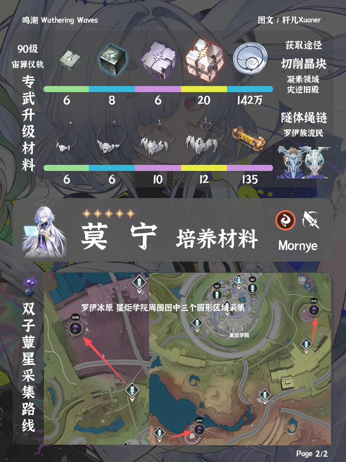 鸣潮莫宁需要什么培养材料,本期攻略内容是莫宁培养材料,包括莫宁突破升级材料、技能升级材料、专武突破升级材料、双子蕈星采集位置,由漂泊者小助手轩儿Xuaner为大家分享这些材料内容。