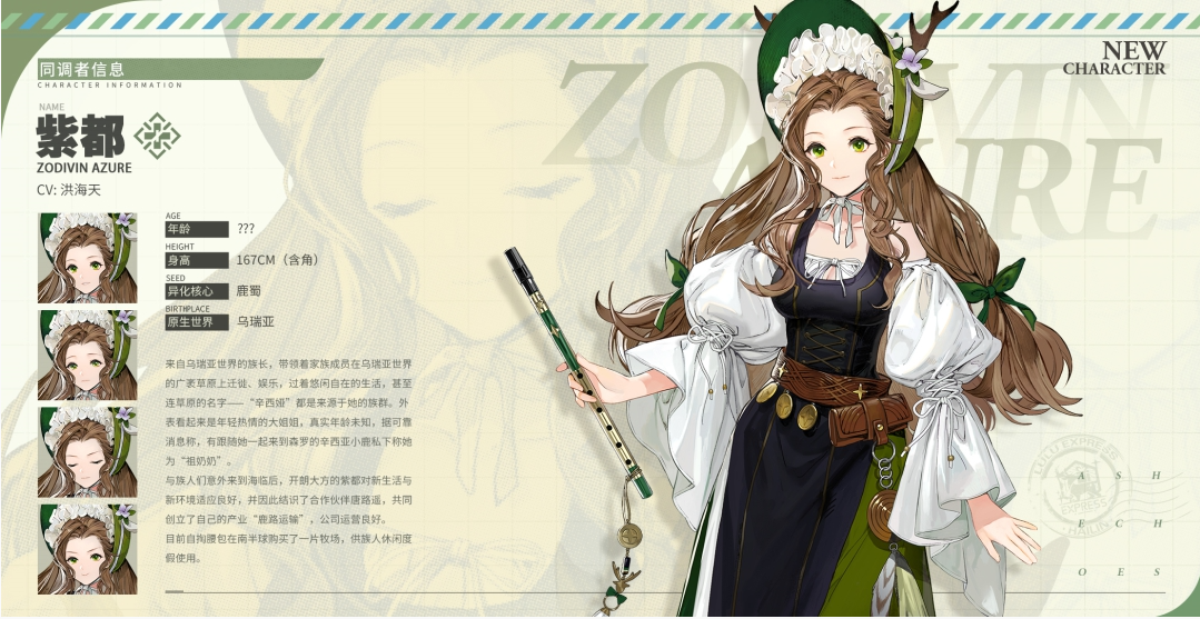 当异世界交汇之时,紫都与族人们意外来到海临,大方热情的紫都立刻适应了新世界的生存法则,并在机缘巧合之下与唐路遥结识,创建了“鹿路运输”公司。目前,公司运转情况良好,而作为创始人的紫都则利用自己的分红购买了一片很大的农场,为族人们提供休闲、娱乐的场所。