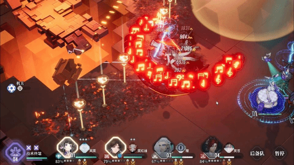 4、手术灯阶段会向周围发射大量音符,同时强化全场友方单位,时刻击落boss和小兵放出的音符是保证核心安全的关键。