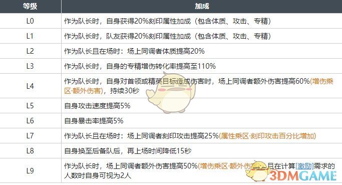 潜能等级L3:作为队长时,专精增伤转化率提升至110%