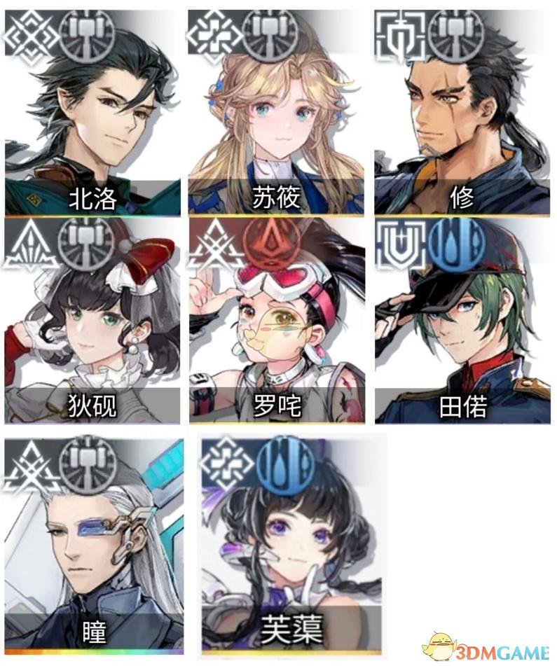上图8名角色可以组成两套基础阵容,一套是入门的,一套是进阶的,大家根据自己现有的角色可以进行组合。