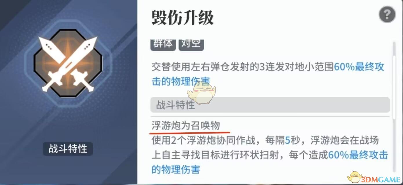 首先当我们没有岑缨的时候,瞳就是除去北洛以外唯一的一名物理属性输出角色了,虽然在面板介绍时没有说到瞳有召唤的技能,但是其使用的浮游炮是被判定为召唤物的,如下