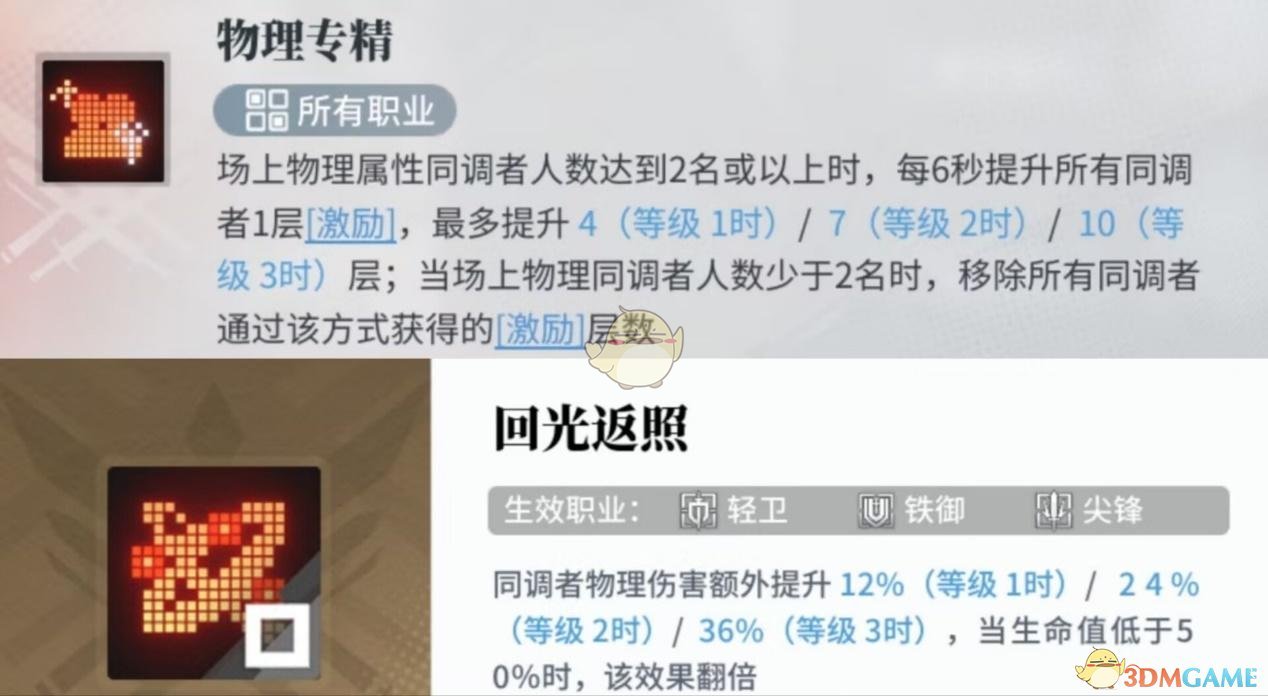 上图为恶土之花的技能,其中物理专精对物理队帮助大,但需要场上有2名物理角色,使用不论是在阵容的基础形态还是完全形态,我们都保证了两个物理角色的存在。要不然就会失去这个技能叠加的激励效果层数。