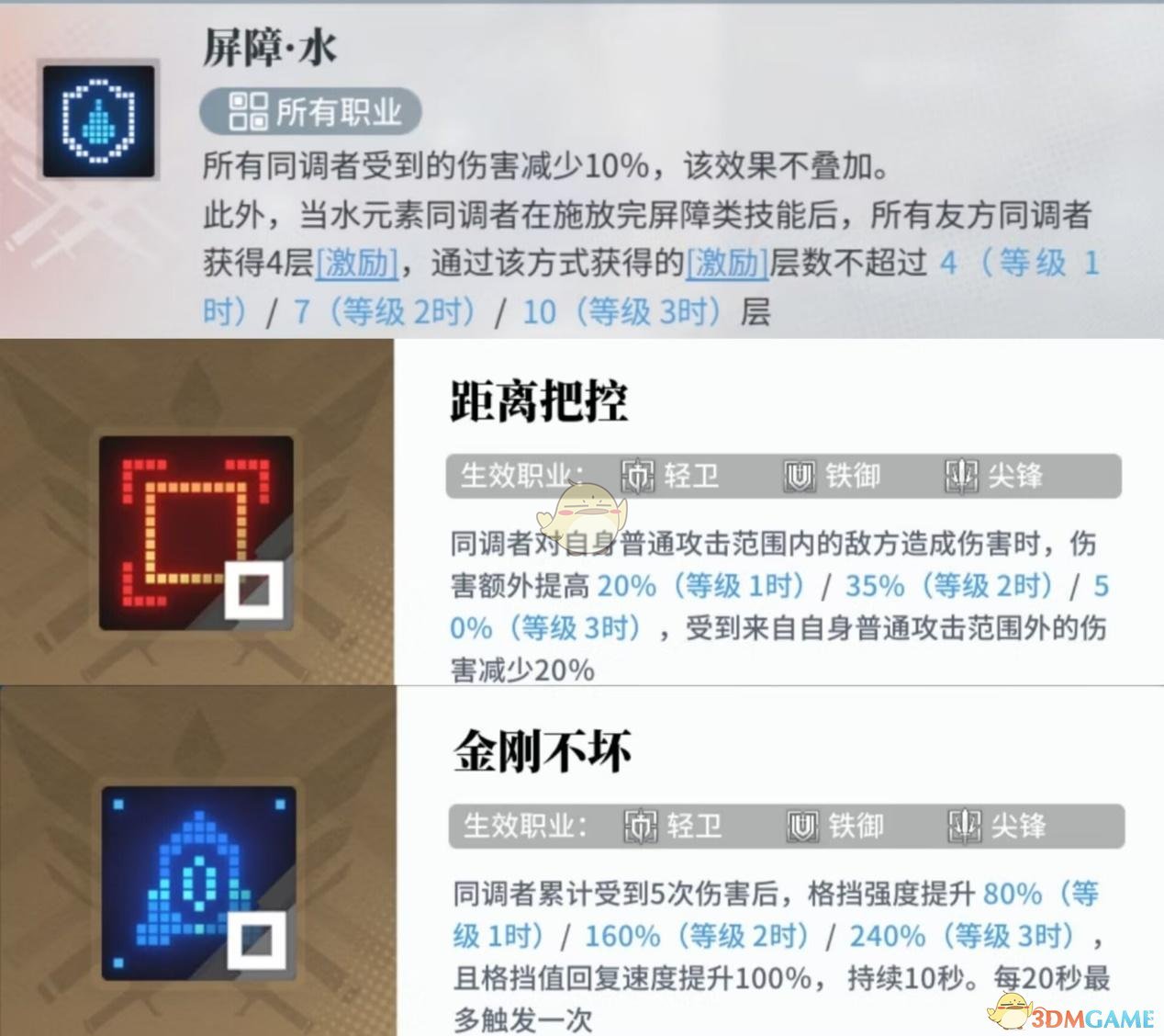 核心技能“屏障水“和代号百草的效果类似,需要水属性的角色产生屏障来触发激励。