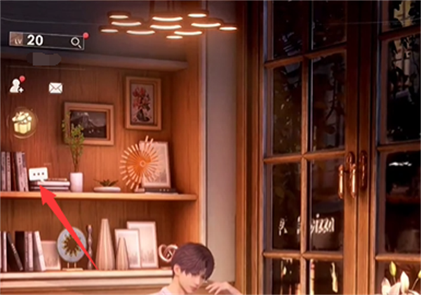 1.进入游戏主界面,点击左上方书架上的书。